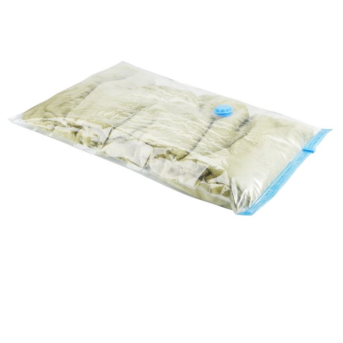 Save space and protect your belongings with this set of 10 Vacuum Storage Bags (70 x 50cm), complete with a convenient hand pump. These airtight and reusable bags are perfect for compressing clothes, bedding, and soft furnishings, reducing their volume by up to 75%. Made from strong, tear-resistant material, they shield contents from dust, moisture, and pests. Ideal for seasonal storage, travel, or moving, offering an efficient and hygienic way to store your items while maximizing available space.