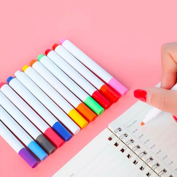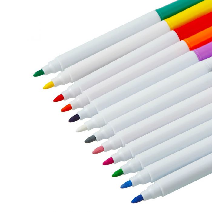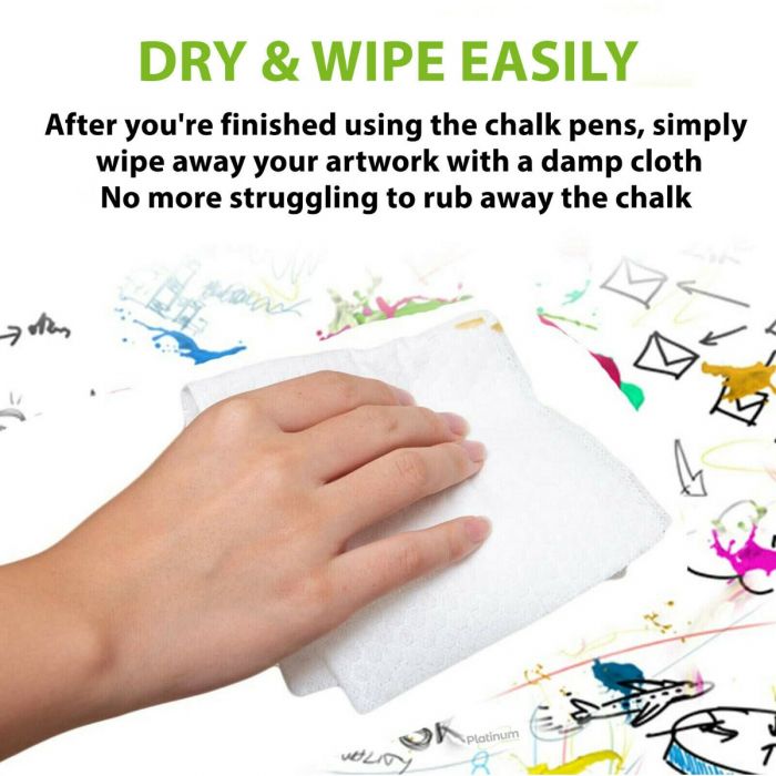 Bring color and creativity to your surfaces with this set of 12 liquid chalk pens. Designed for use on glass, blackboards, whiteboards, and plastic, these markers produce bright, bold lines that are easy to wipe off with a damp cloth. The water-based ink is non-toxic, dust-free, and perfect for home, school, or café displays. Each pen offers smooth, consistent flow, making it great for writing menus, drawing decorations, or crafting messages on windows. With 12 vibrant colors, you can add artistic flair to any space while keeping it clean and reusable.