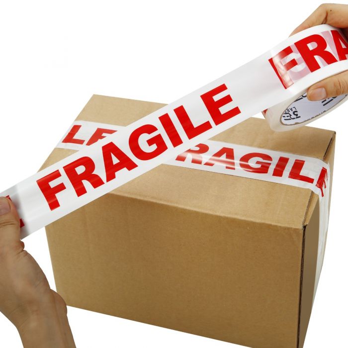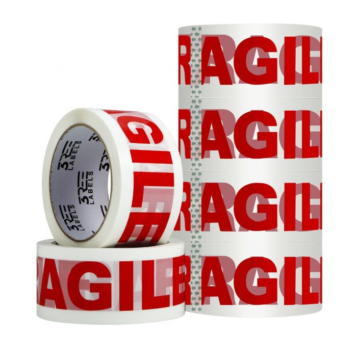 This 3REE FRAGILE printed packing tape is designed to protect delicate items during shipping and storage. The bold red FRAGILE print ensures handlers immediately notice and take care when moving your parcels. Measuring 48mm wide and 66m long, it provides strong adhesion that keeps boxes securely sealed. It is ideal for e-commerce packaging, warehouses, removals, and businesses shipping breakable goods.