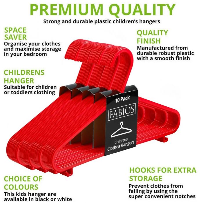 Organize your child’s wardrobe with this 40-pack of Red Plastic Children’s Hangers, sized at 29cm. Crafted from sturdy yet lightweight plastic, these hangers are perfect for small garments such as t-shirts, jackets, and school uniforms. The built-in shoulder notches keep clothes securely in place, preventing them from slipping off. Ideal for use in bedrooms, nurseries, and retail clothing displays, these colorful hangers bring both functionality and a pop of color to your storage space.