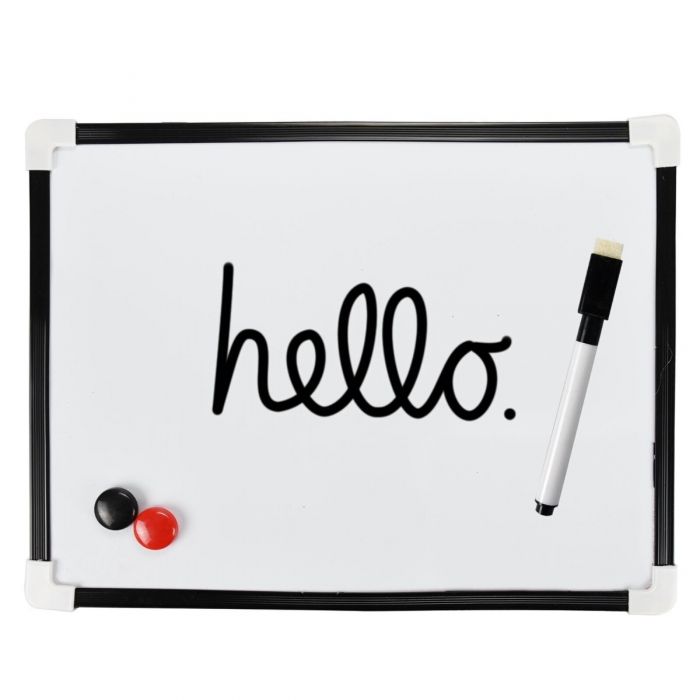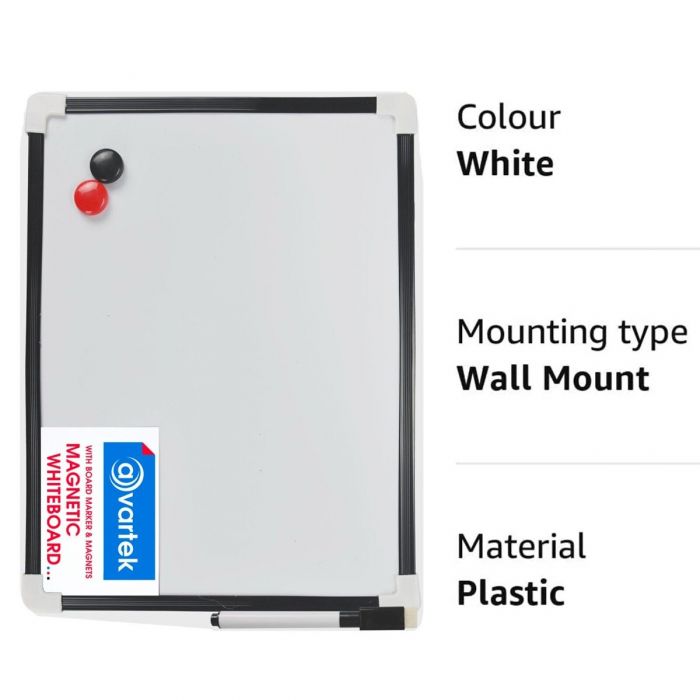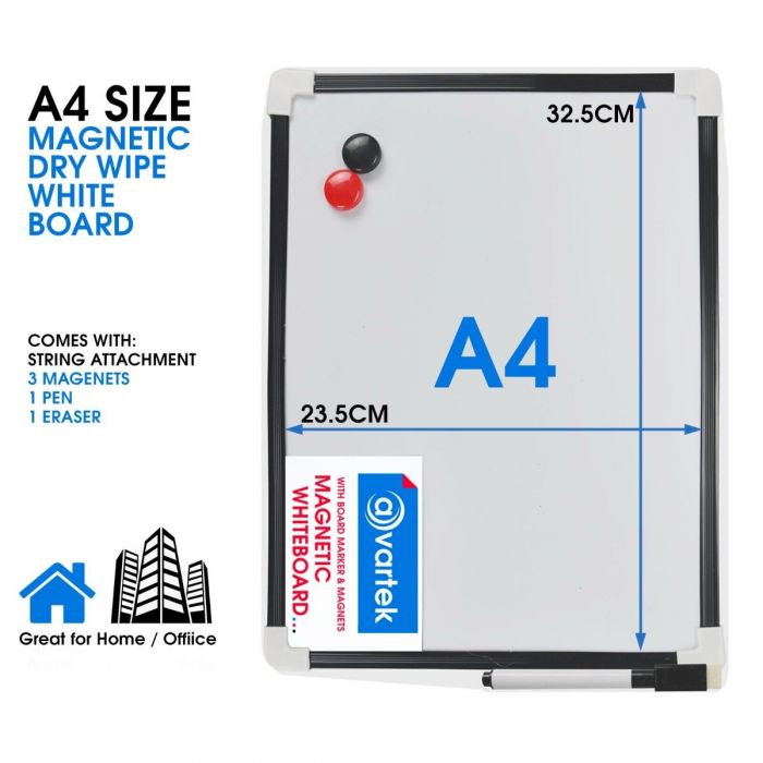 Stay organized with this compact A4 Magnetic Whiteboard ideal for desks, offices, or home use. It comes with a dry wipe marker, built-in eraser, and strong magnets for easy attachment to fridges or filing cabinets. The smooth white surface ensures clean writing and quick erasing, perfect for reminders, schedules, or to-do lists. Lightweight and portable, it’s great for students, teachers, and office professionals.