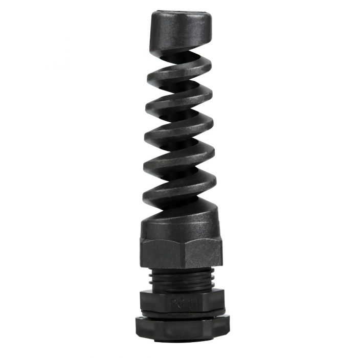The AVARTEK PG11 spiral cable gland is designed to accommodate 5mm to 10mm cables, providing superior mechanical protection and waterproof sealing in challenging environments. The spiral tail prevents excessive strain and protects wiring from tension and bending damage.