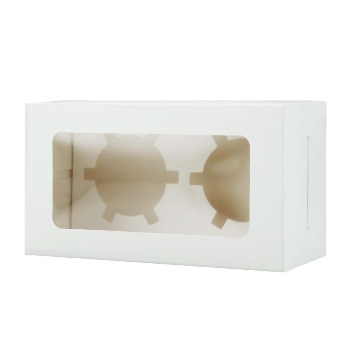 Showcase your baked goods beautifully with our Cupcake Boxes (Holds 2) — available in a 10-pack set. Made from sturdy, food-safe white cardboard with a clear window, these boxes highlight your cupcakes while keeping them secure and fresh. Perfect for bakeries, parties, and takeaway businesses, they offer easy assembly and strong structural integrity. Ideal for cupcakes, muffins, or small desserts, ensuring your creations look as good as they taste.