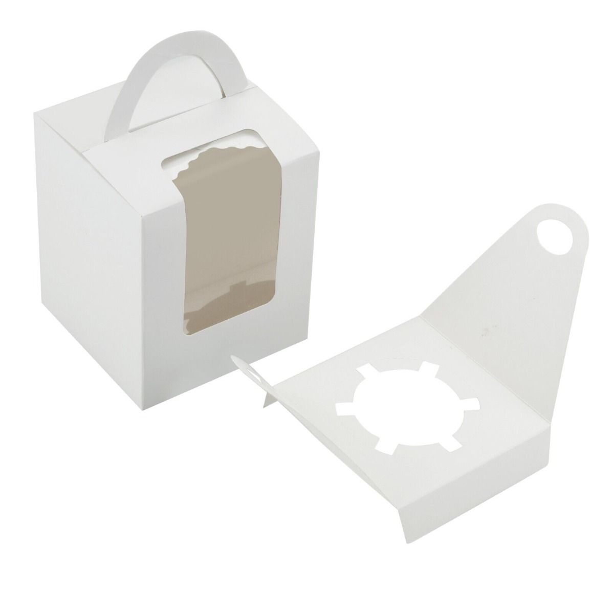 Present your baked goods in style with our Cupcake Boxes (Holds 1), available in a 10-pack set. Crafted from sturdy, food-safe white cardboard with a clear display window, these boxes protect your cupcakes while showcasing them beautifully. Ideal for bakeries, cafés, and events, they are easy to assemble and offer a professional finish. Perfect for single cupcakes or desserts, ensuring your treats look as good as they taste.