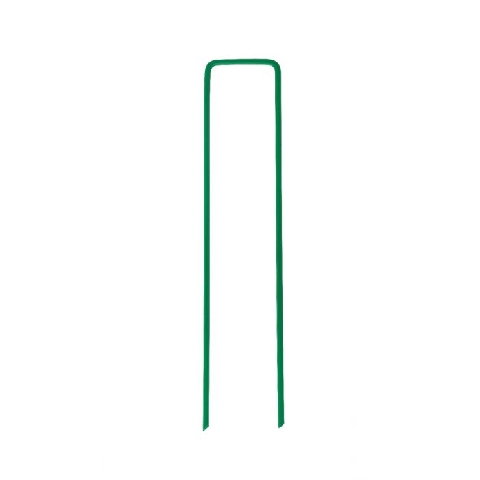 This green galvanised 150mm grass pin is designed for landscaping projects where durability and a natural appearance are essential. Coated in a weatherproof green finish, it blends seamlessly with turf, artificial grass, and garden surfaces, making it less visible once installed. Built from strong galvanised steel, the pin is rust-resistant and maintains its strength even when exposed to rain, moisture, or soil conditions for extended periods. The U-shaped frame provides secure anchoring for weed control membranes, garden netting, irrigation pipes, artificial turf, and fabric sheeting. Ideal for DIY garden improvements and professional landscaping work, the pin is easy to drive into the ground and holds firmly without bending. Its sturdy design prevents fabric from lifting during windy conditions or foot traffic. Perfect for gardeners seeking long-lasting ground support that remains discreet and visually unobtrusive.