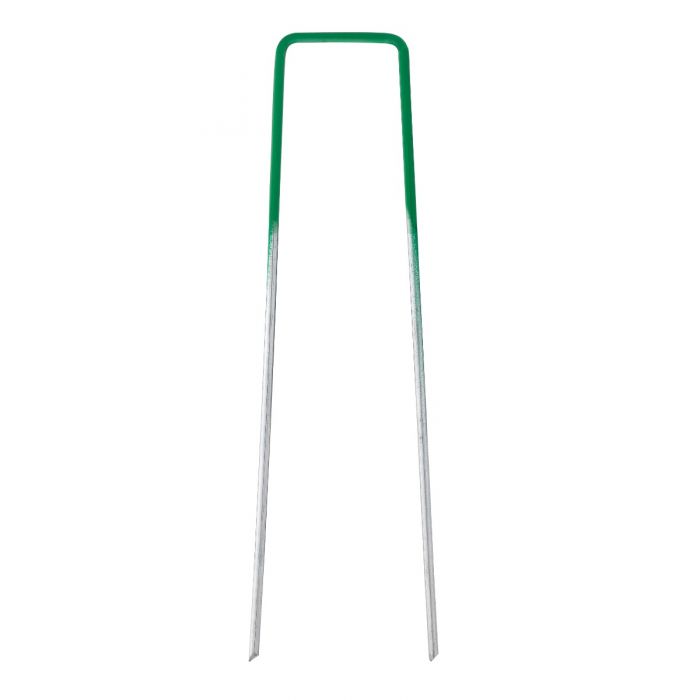 This single silver galvanised grass pin measuring 150mm offers a durable and rust-resistant solution for securing garden materials. Made from galvanised steel, it withstands outdoor moisture and long-term soil exposure. Ideal for fixing landscape fabric, netting, artificial turf edges, hoses, and fleece covers, it provides strong ground anchoring thanks to its U-shaped design. A reliable choice for gardeners and landscapers needing a simple, sturdy fastening option.