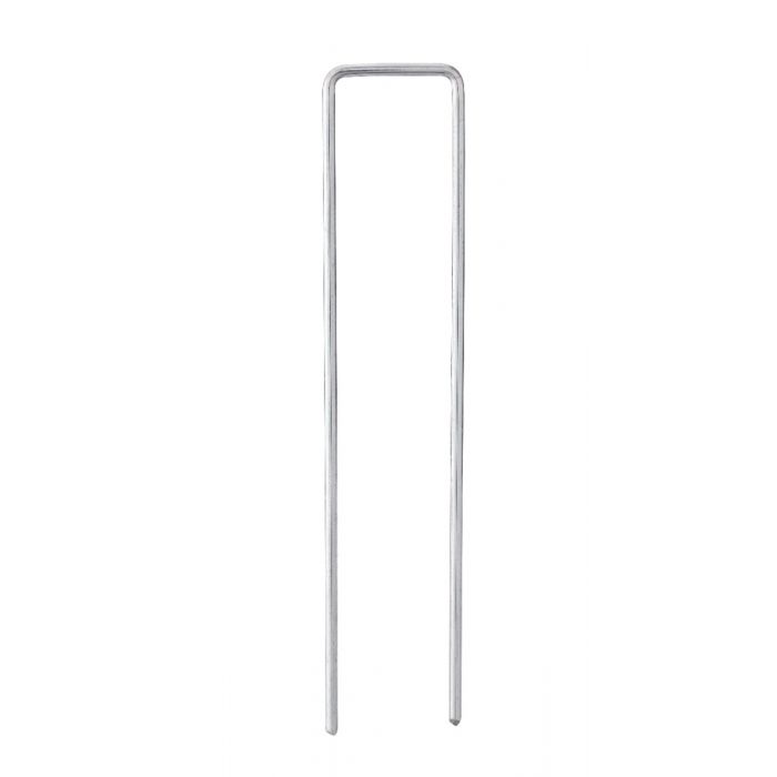 These 100 green galvanised grass pins, each 150mm long, are designed to blend seamlessly with lawns, turf, and garden landscapes. Their green coated galvanised steel construction resists rust and provides excellent durability in outdoor weather conditions. Perfect for securing artificial grass, turf edges, weed control fabric, garden netting, and plant covers, these pins provide strong anchoring thanks to their U-shaped design, which grips the ground firmly. Easy to install and suitable for both soft and firm soil, they are ideal for DIY gardening projects, landscaping professionals, and larger installations. Their green finish offers a discreet, natural look that reduces visibility after installation, ensuring a tidy and professional appearance.